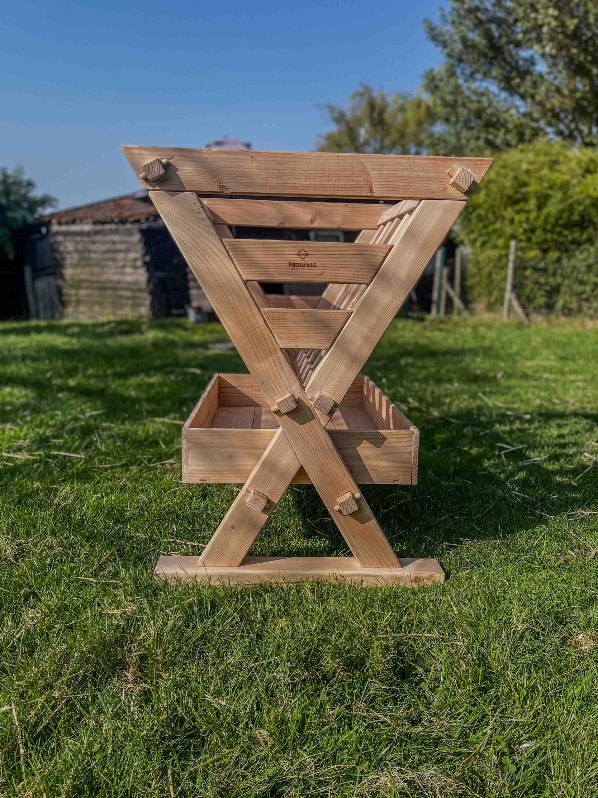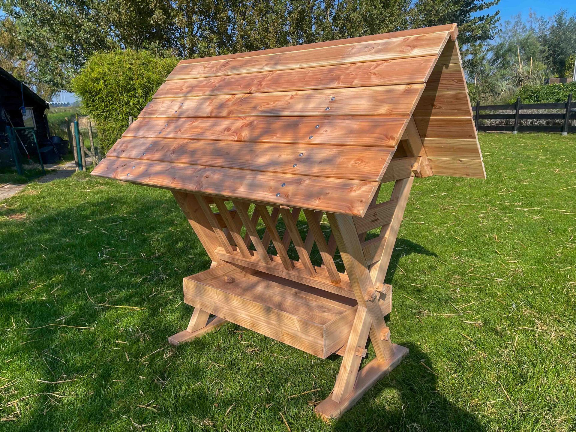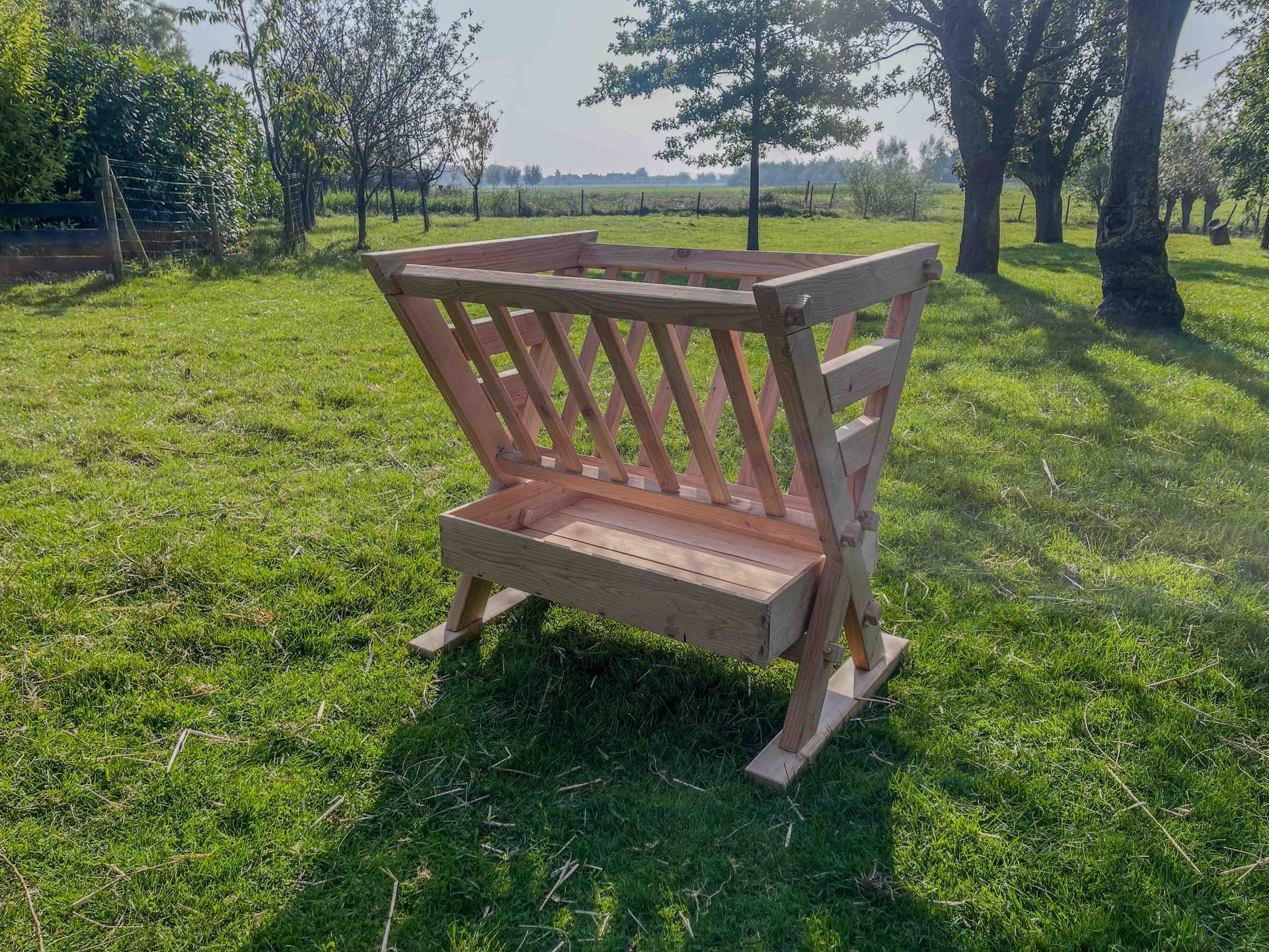 De basis ruif is: 1 meter hoog, 80 cm breed en 1.05 meter lang
