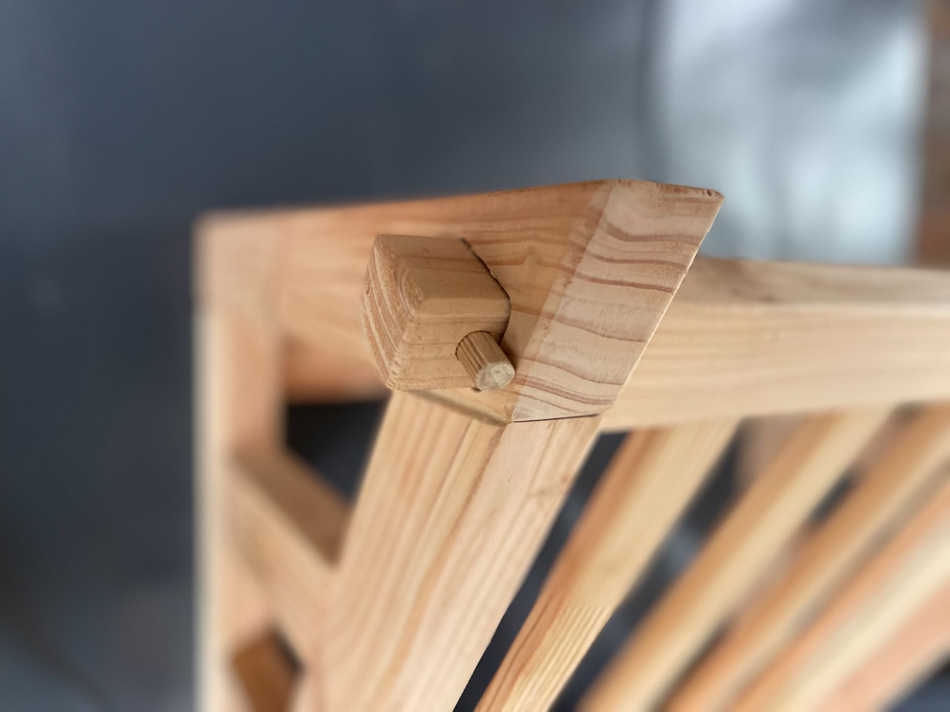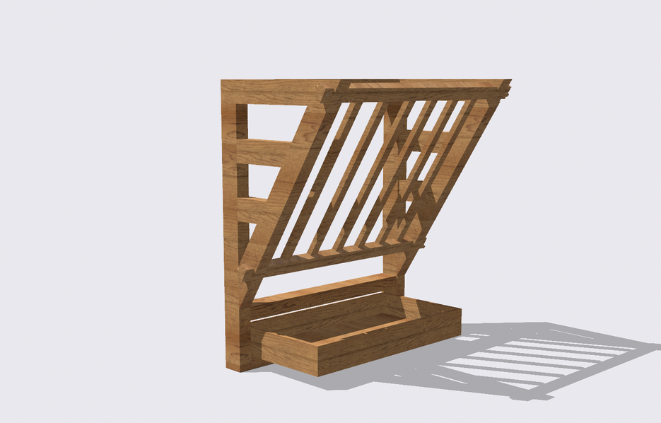 De hangende hooiruif is op aanvraag in meerdere maten leverbaar. Standaard is onbehandeld Douglas. De bak is te verwijderen en is bevestigd met twee houten borgpennen. Er zijn geen spijkers en schroeven gebruikt. Alles is mooi afgerond en geschuurd.